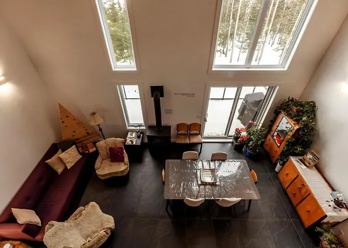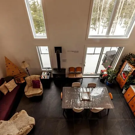 Vila Chalet Scandinave Bordure Lac -Sauna -Laurentides Sainte-Lucie-de-Doncaster se nachází 5 km od Lac Ludger, nabízí výhledy na zahradu a poskytuje hostům saunu. K této vile patří 2 ložnic, a také balkón, přístroj na přípravu kávy/čaje a psací stůl v pokojích.